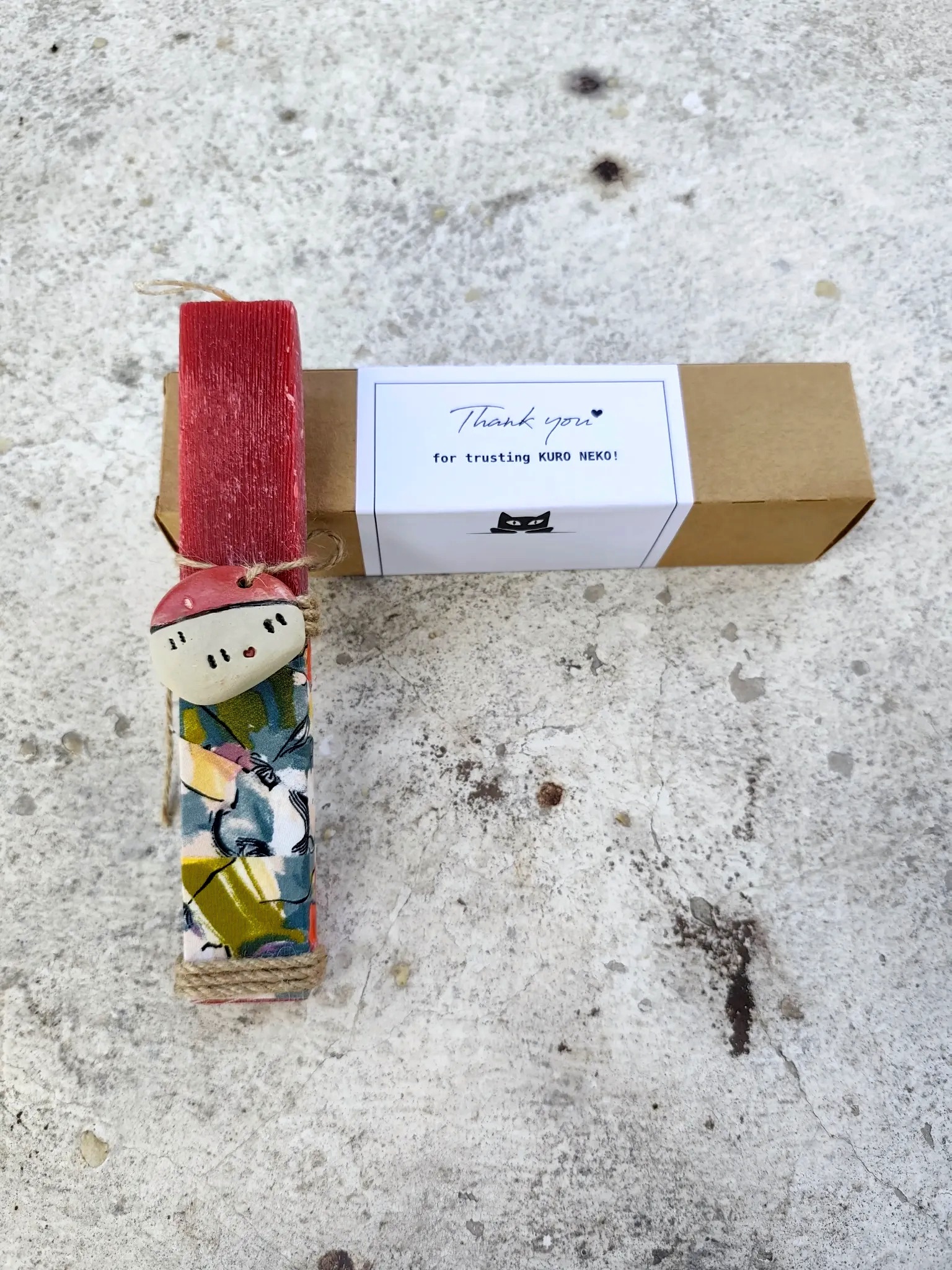 Λαμπάδα κόκκινη ξυστή, αρωματική με χειροποίητο κεραμικό γουράκι kanji love!